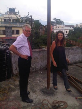Ambassador Finn Thilsted visit the construction site and checking out one of the poles that very soon will carry the roof of our loft apartment.