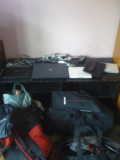 3 bags, 4 computers and 4 mobile phones in a cheap guest house in Boudha - that's it!