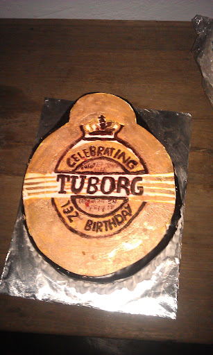 We don’t now exactly how many turned up. But it was between 150 and 200 – and they enjoyed around 400 mini Calzones, lots of beers and home made Ice Tea and the huge Tuborg Birthday cake…