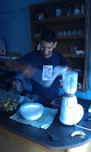 He makes the most delicious Banana Lassi and Spinach/Mushroom momos.
